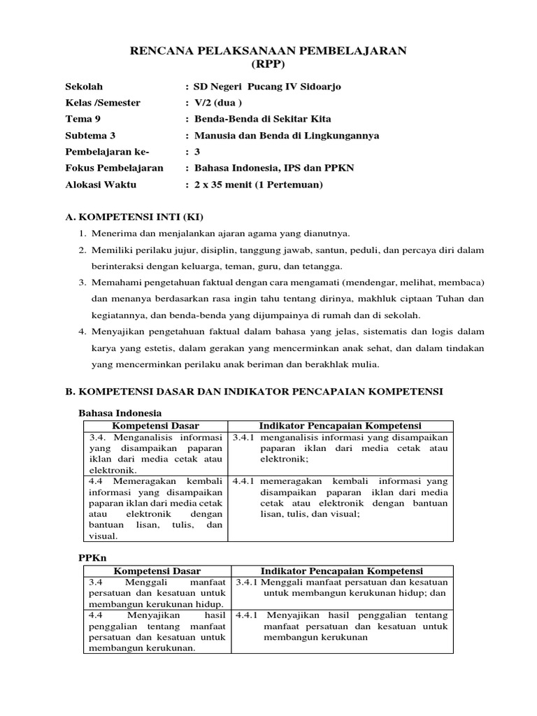 Fendra nugroho channel berupaya untuk menyediakan video pembelajaran bagi guru dan juga siap untuk menjadi. V/2 (dua ) tema 9 : Artinya beberapa pelajaran dipelajari menjadi satu tema, agar para siswa dapat mempelajari semua mata pelajaran yang berhubungan. Rencana pelaksanaan pembelajaran (rpp) merupakan salah satu dokumen perangkat pembelajaran yang wajib dimiliki oleh guru. 1 x pertemuan (5 x 35 menit) :3 a.